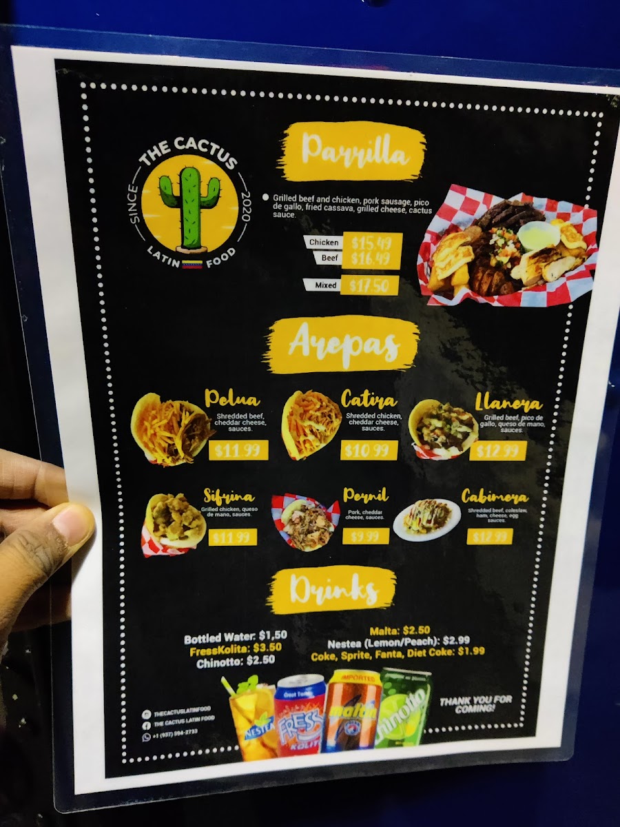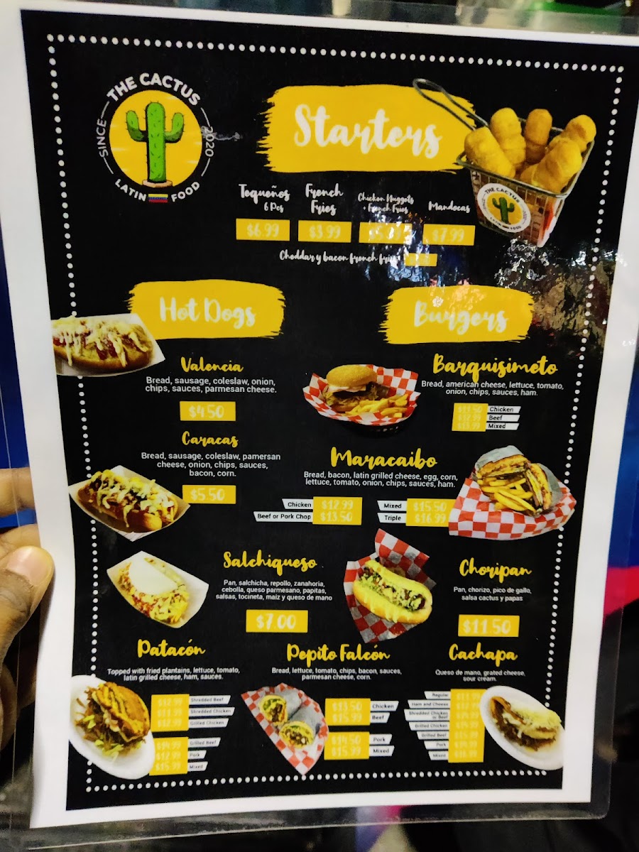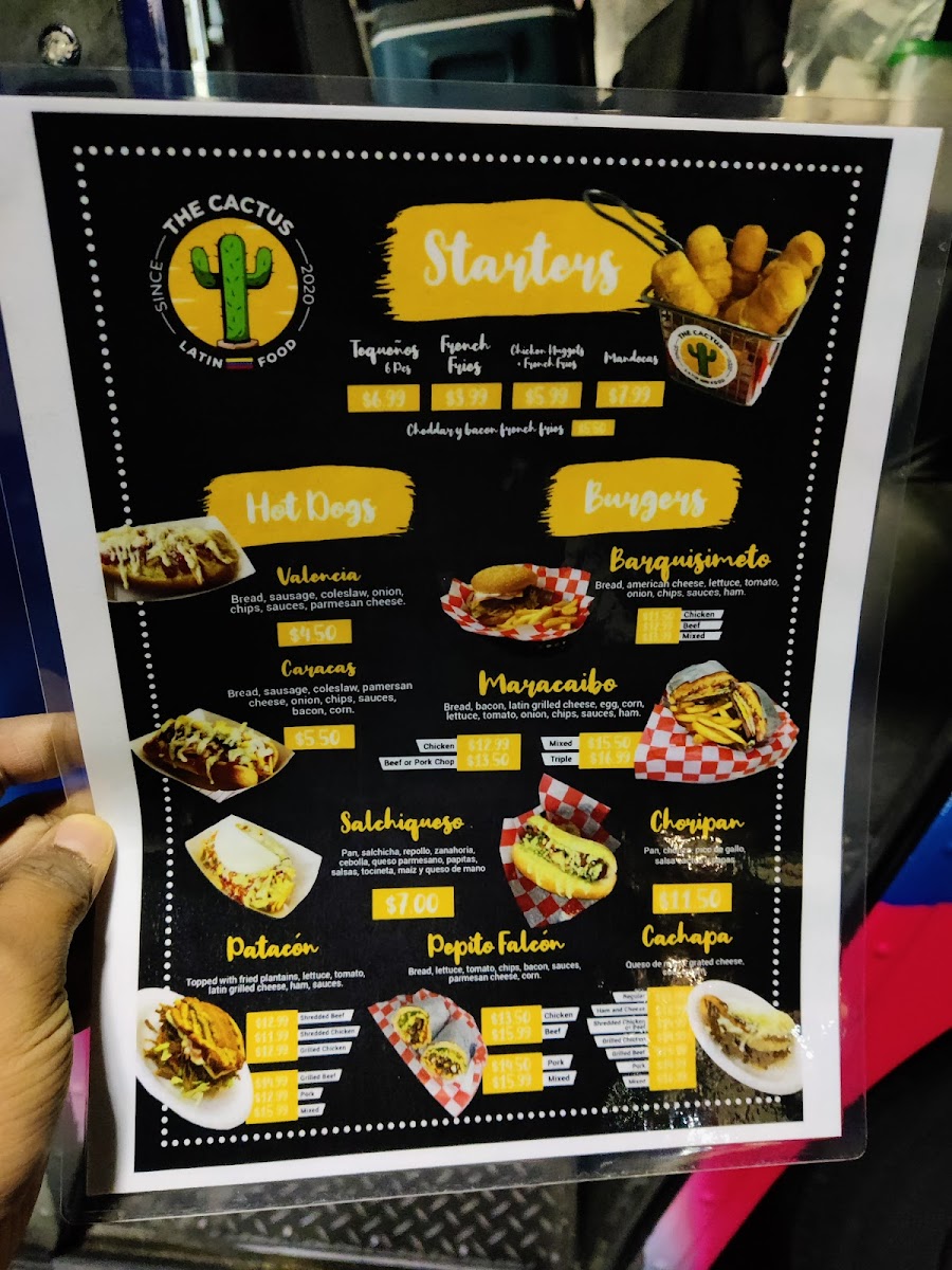 The menu at The Cactus Latin Food offers a flavorful blend of Latin-inspired dishes that cater to a variety of tastes. For those seeking a sweet treat, the Three Milk dessert is a must-try, offering a rich and indulgent experience. To kick off your meal, the French Fries and Tequeños (6 pcs) provide a simple yet satisfying start, while the Chicken Nuggets + French Fries make for a comforting, familiar option. For burger lovers, the Barquisimeto, Pepitos Falcon, and Cactus Burger each deliver a unique twist on classic burgers, with bold flavors that stand out. If you're craving something more adventurous, the Cachapas and Maracaibo bring a taste of Latin American street food to the table.